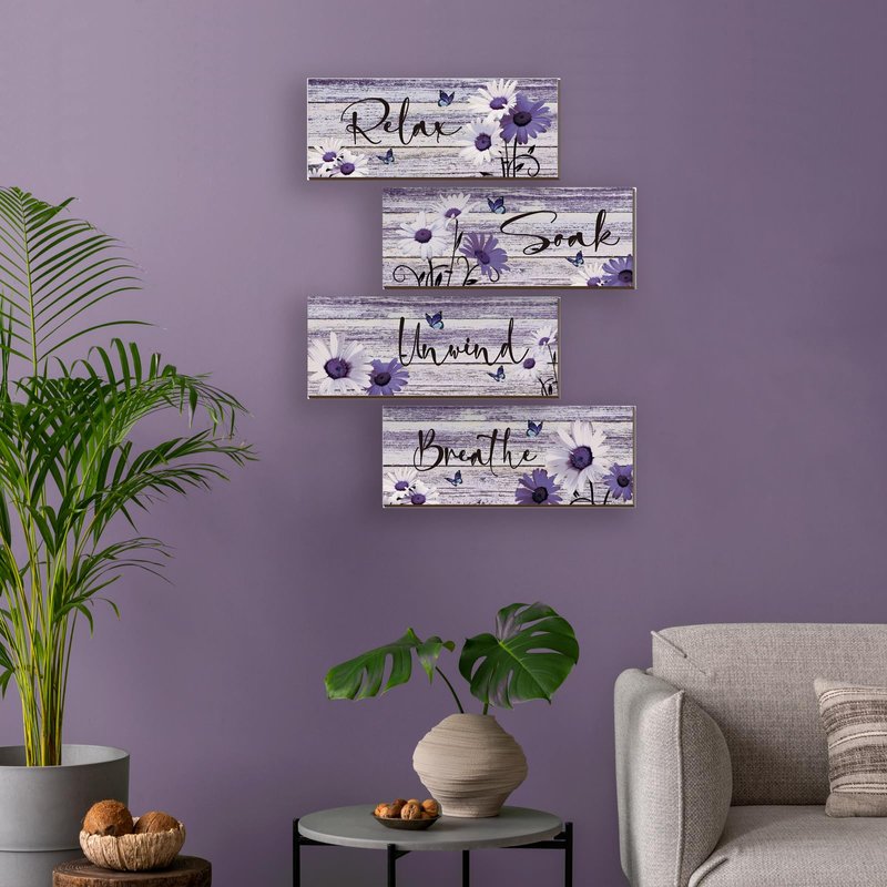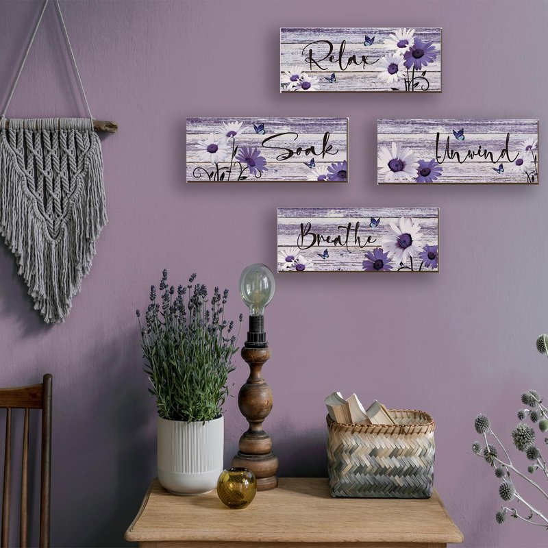 - Purple Bathroom Wall Decor Set: You will receive 4 pieces of bathroom wall decors in the package in total, and they are available in 4 styles, each style has 1 piece, These modern purple decor will not only give you visual appeal but will also give you an uplifting, warm and relaxing feeling
