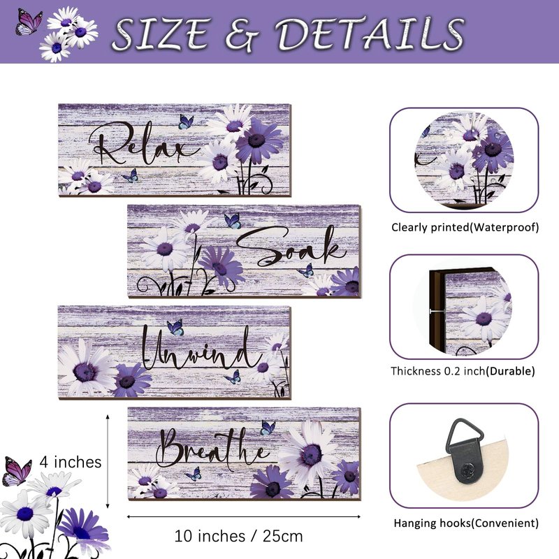 - Wide Applications and Ideal Gifts: our rustic bathroom wall decor is suitable for you to apply in many bedrooms, bathrooms, kitchens, living rooms, offices and other places, suitable for you to hang on walls, doors, windows and fireplaces to add a warm and inviting atmosphere, purple wall decor signs can be given as a gift to show kindness and care to our families, friends, neighbors, relatives and more we care, It can fully express your appreciation and enthusiasm.