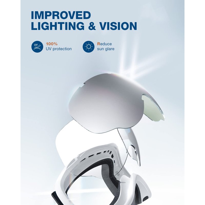 - Full Protection for Eyes - Anti-fog and 100% UV Protection treatment on double layer lens. The ski goggles ensure crystal view on the slope when skiing and snowboarding.