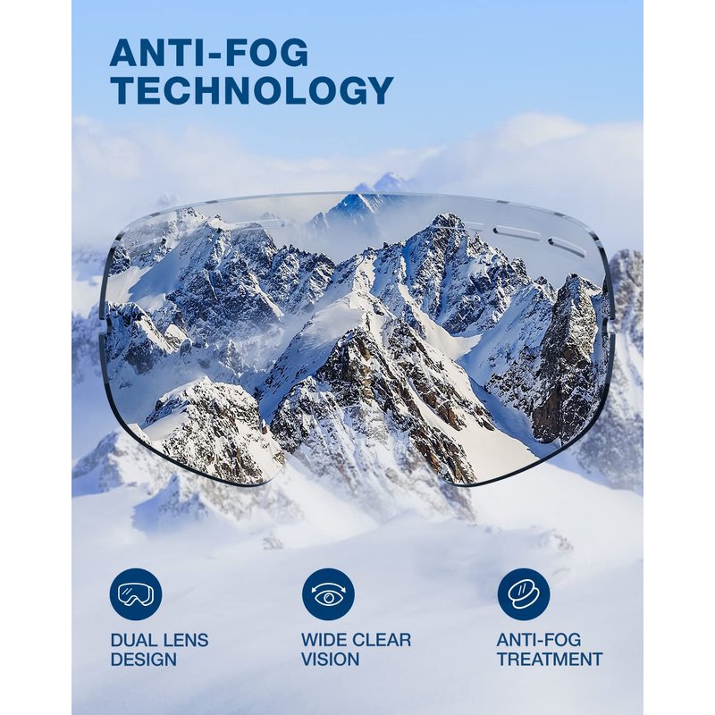 - Top Clarity View: Panoramic designed ski goggles with optimized anti-fog & UV protection treatment for crystal and wide view when skiing and snowboarding.