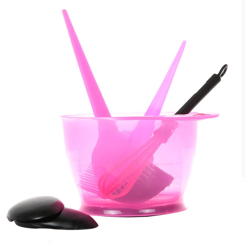 ZIOYCKL DIY Salon Dye Hair Tool Kit, 6Pcs Hair Dye Brush/Bowl Set, Professional Salon Hair Coloring Dyeing Kit - Mixing Bowl, Angled Comb and Brush (Pink)