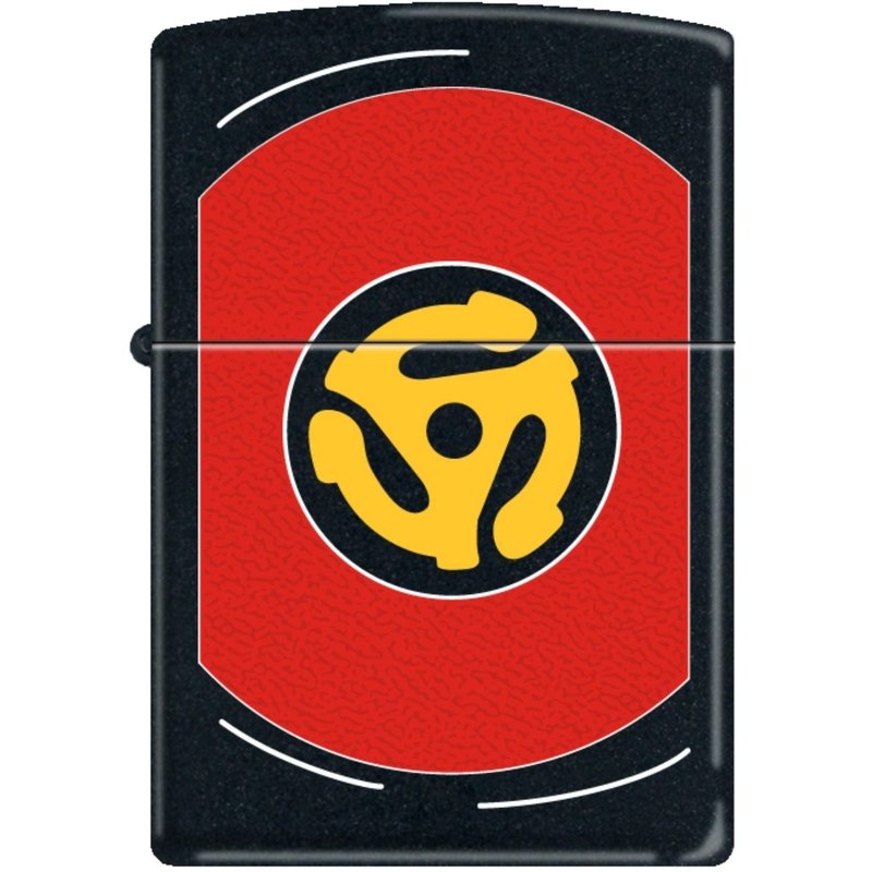 This personalized windproof Zippo lighter has a matte black finish, with a vinyl LP record design. This product is made in the USA and comes with Zippo's lifetime warranty.