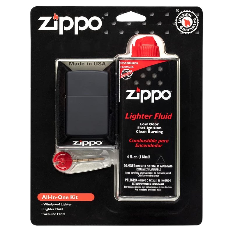 Zippo All-in-One Kit with Black Matte Windproof Lighter