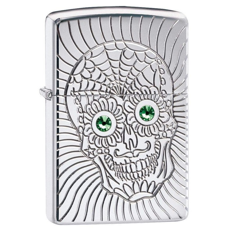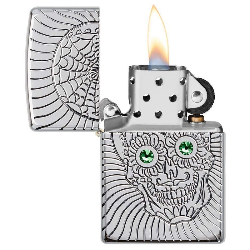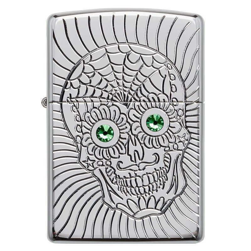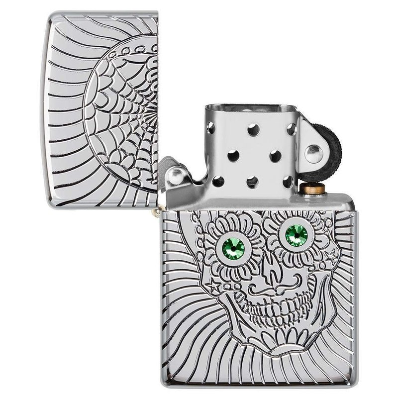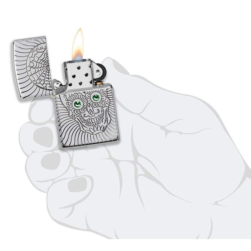 Zippo Armor Sugar Skull Design High Polish Chrome Emblem Attached Pocket Lighter