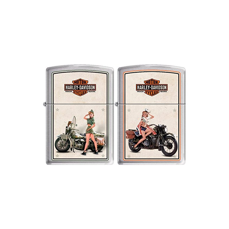 ZIPPO Lighter Harley Davidson Vintage WWII Military Pin up Girls Army and Navy 2 Set Windproof Lifetime WARRENTY