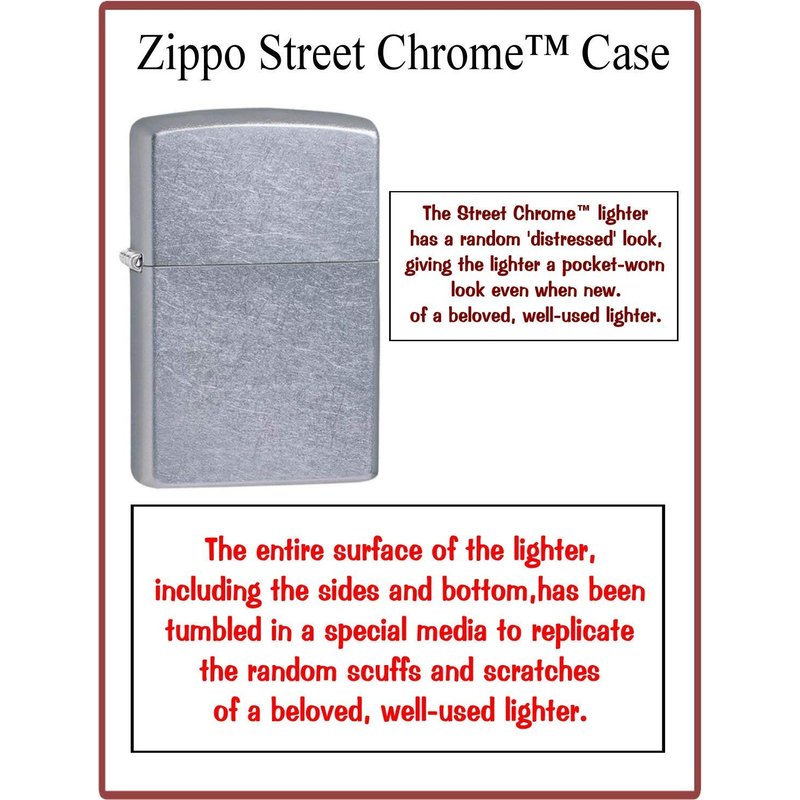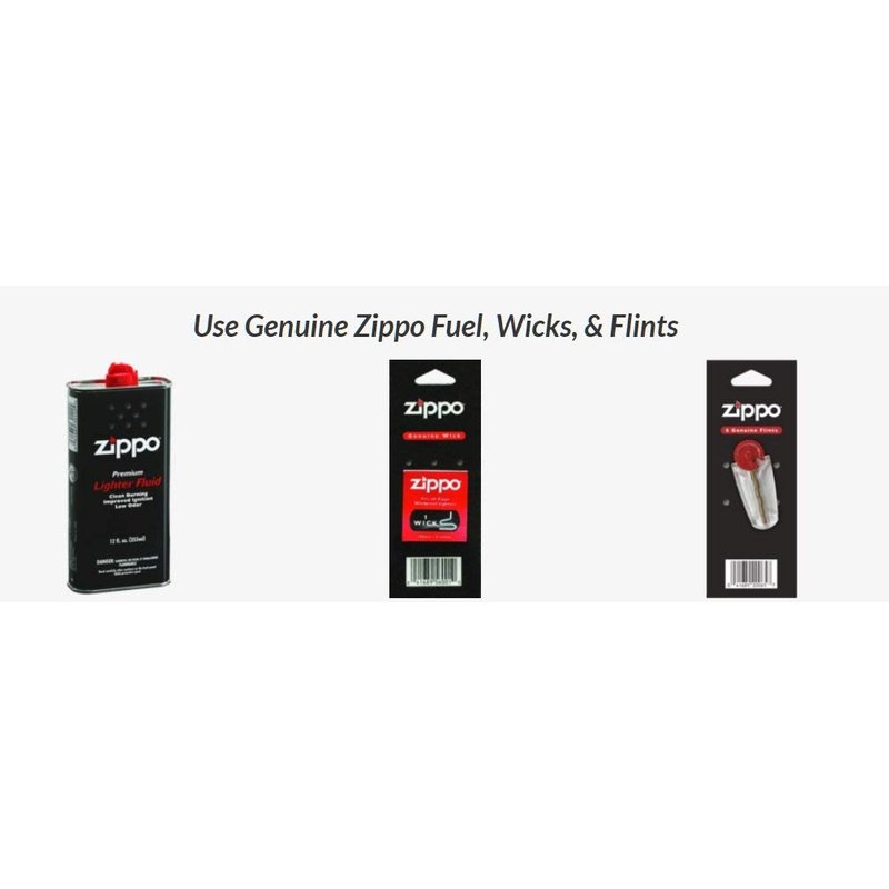 - Genuine Zippo windproof lighter with distinctive Zippo "click"-. Made in USA; lifetime guarantee that "it works or fix it free".
