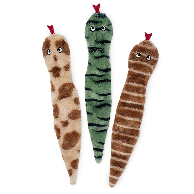 - Stuffing Free Squeaky Dog Toys - These lovable characters will give your dogs hours of fun without the fuss of cleaning up the mess of shredded stuffing. Get playing with 3 adorable, uniquely patterned snakes.