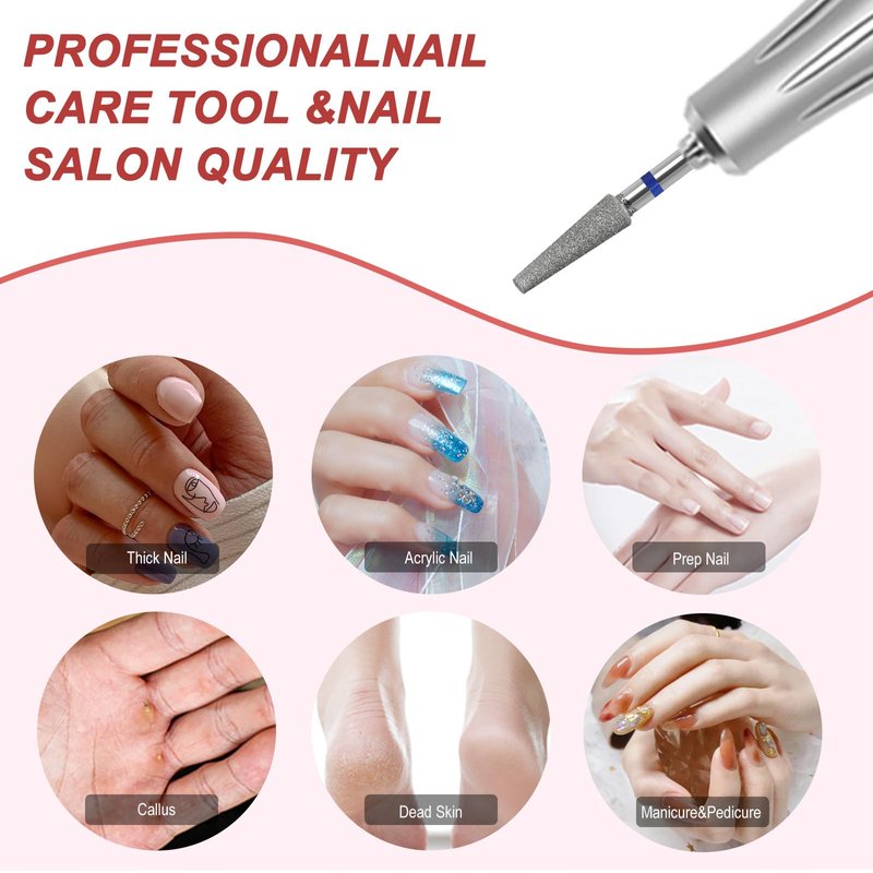 - Easy to Use---The cuticle nail bit suitable for natural or artificial nails, uneven diamond particles, effectively removes dead skin without damaging the natural nail bed. Suitable for professional nail art creation and novice DIY nail art experience. Both easy and safe for beginners and technicians.