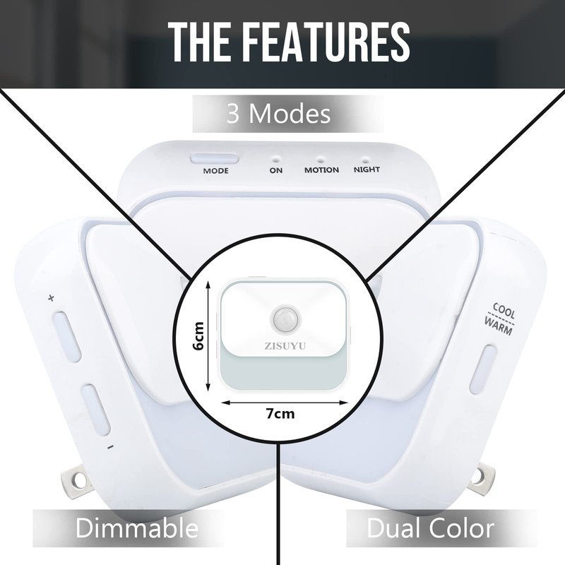 ZISUYU Motion Sensor Night Light Plug in with 3 Modes,Dual Colors,Dimmable,UL-Certified,Dusk to Dawn Sensor Nightlight Plug into Wall Ideal for Home Bathroom Kitchen Hallway Stair Toilet 4 Pack