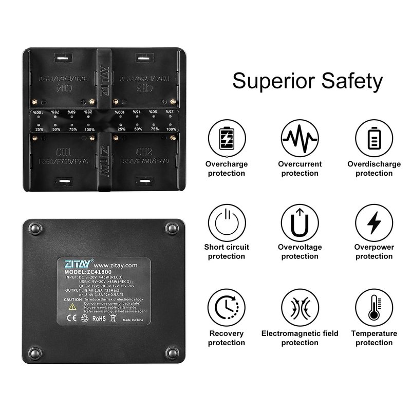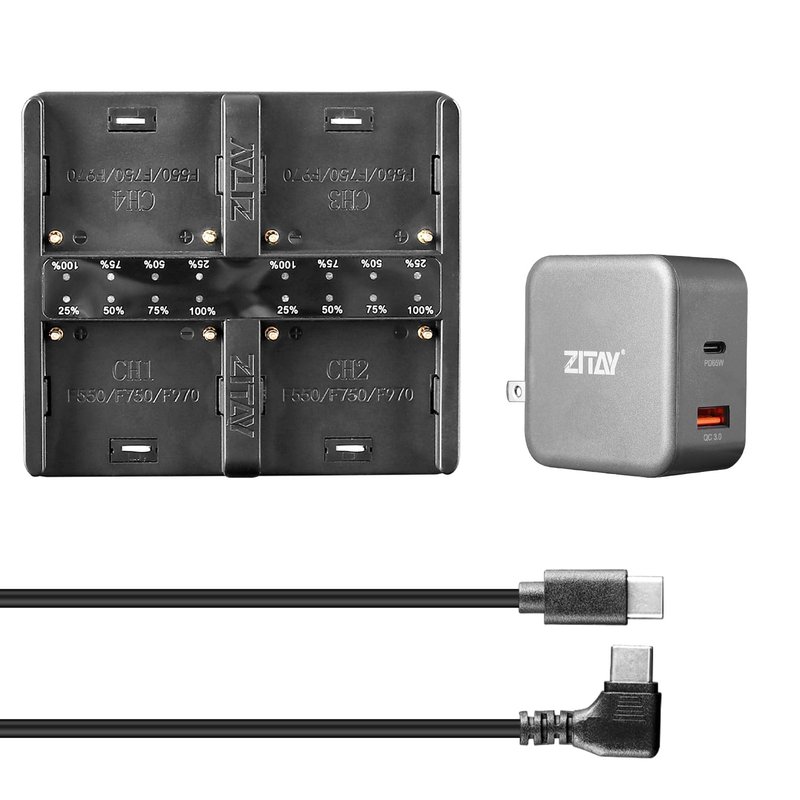 ZITAY 4-Channel USB C Fast Charging Station with PD 65W Quick Charger Adapter Kit for Sony NP-F550, NP-F750, NP-F770, NP-F970 Batteries