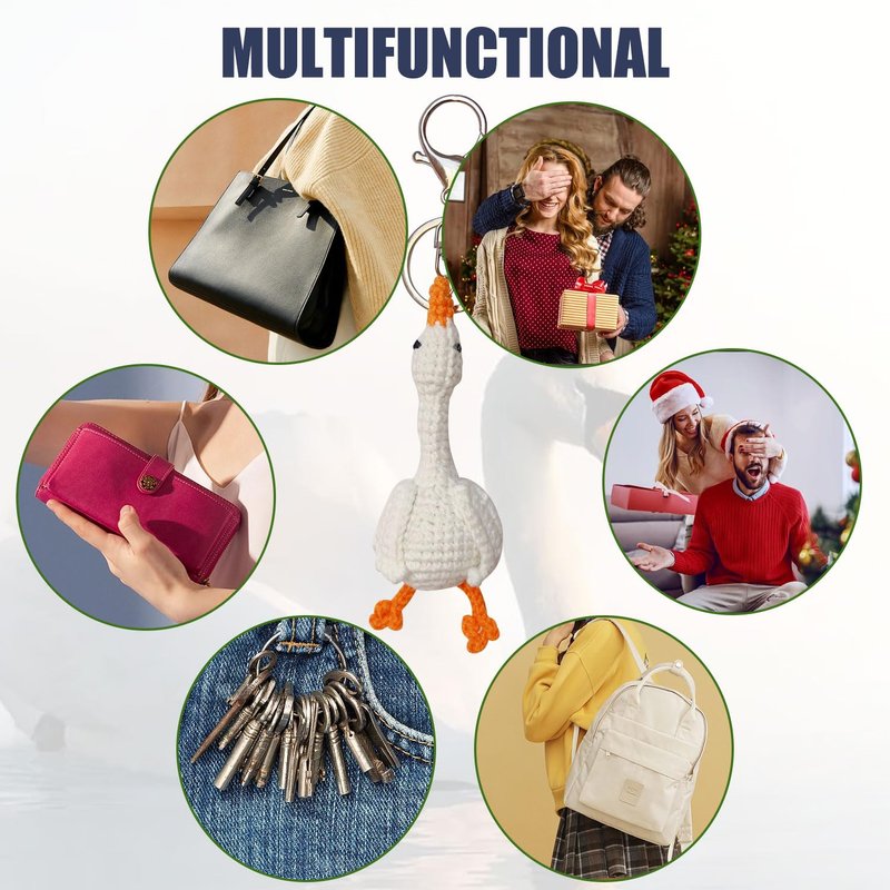 - 【HANDMADE CROCHETED GOOSE】This is a handmade goose keychain, Unique and interesting,FashionableSimple,Textured,Decorative, Unique style,Let you walk in the forefront of the trend