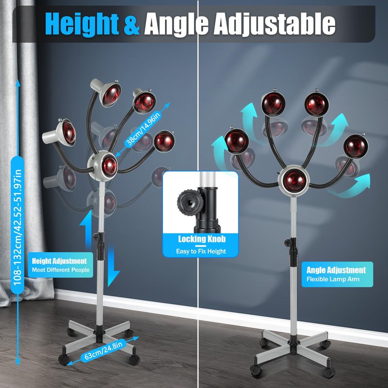 - π©βπ¦±π©βπ¦±γππππππ & πππππ ππππππππππγ The stand can be adjusted in height from 42.52-51.97inch, and the arm of the lamp can be adjusted in angle at will, which is well adapted to customers of different heights and sitting postures, reduces the pressure on the neck and shoulders, and provides comprehensive heating and better hair care.