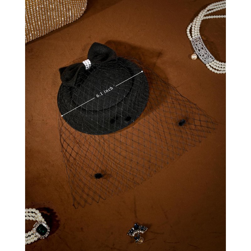 - Black veil fascinator for women,derby hat for ladies,fasinationors material:netting,fabric bow,pearl;Diameter about 5"
