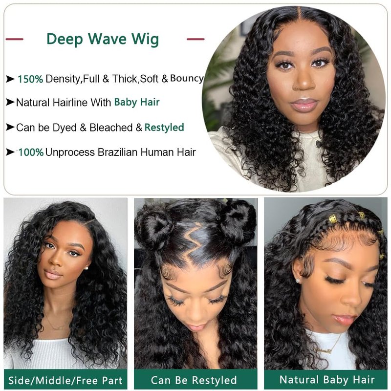 - 【💖Deep Wave Human Hair Wig Color】Natural black color human hair wigs, can be dyed and bleached.It's normal to have some minimal chromatic aberrations due to shooting angle and lighting different.