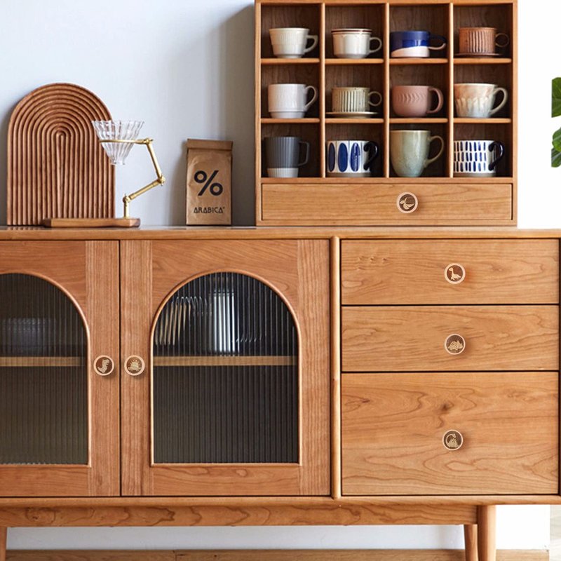 - 【Widely Use】6 different design dinosaur wooden cabinet knobs, allowing you to choose the best one for your kitchen cabinets, Children's room, cupboards, furniture doors, drawers, bookcases, bathroom, bedroom cabinets etc. It will offer your furniture and room with good shiny appearance.