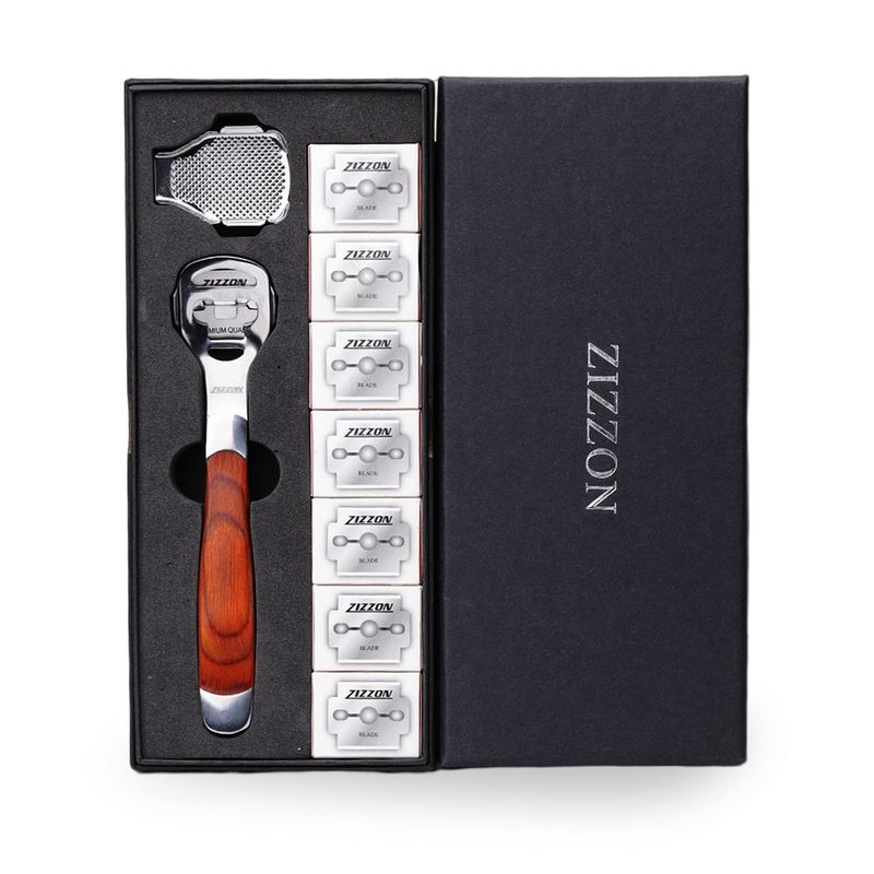 ZIZZON Foot Care Pedicure Callus Shaver Hard Skin Remover Wood Handle 70 Blades