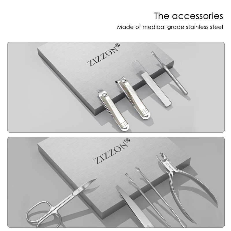 ZIZZON Manicure Set Professional Stainless Steel Toenail and Fingernail Clippers Set 9 in1 Pedicure and Grooming kit with Travel Case (Black)