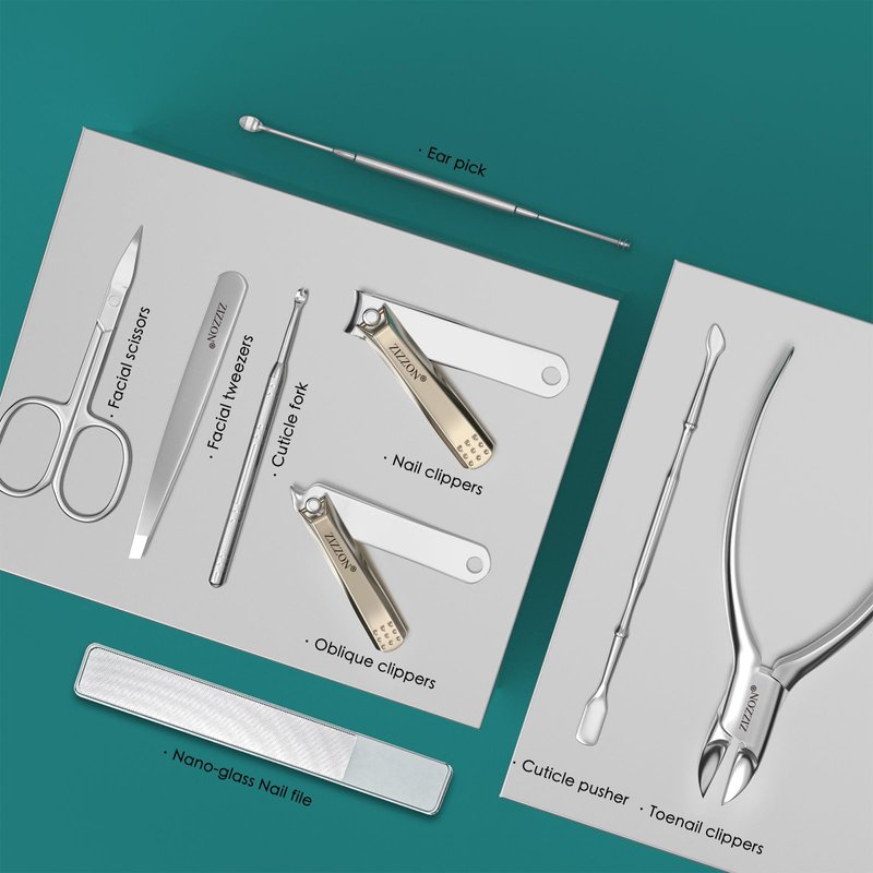 - Gift Ideal: Including big toenail clippers (with protect cover), fingernail clippers (with catcher), tweezers, scissors, glass nail file, etc. These hand care, foot care and facial care tools can meet your person care daily need. It is an amazing gift (festival, anniversary, birthday, marriage )for your family or friends.