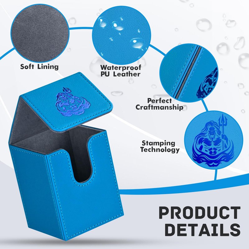 ZLCA Card Deck Box for MTG Cards with 2 Dividers, Card Storage Box Fits 100+ Single Sleeved Cards, PU Leather TCG Card Deck Case Holder for Magic Commander Yugioh (Blue,SeaKing)