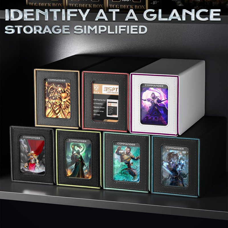 - 𝐓𝐚𝐢𝐥𝐨𝐫𝐞𝐝 𝐄𝐥𝐞𝐠𝐚𝐧𝐜𝐞,𝐂𝐨𝐦𝐦𝐚𝐧𝐝 𝐘𝐨𝐮𝐫 𝐒𝐭𝐲𝐥𝐞:The ZLCA MTG Card Deck Box's unique Commander window effortlessly integrates a 35 pt Card Brick,offering a personalized showcase.Streamlining deck identification without opening the box,it stylishly presents your prized collection.Immerse yourself in customized displays,making each game a unique and elegant experience