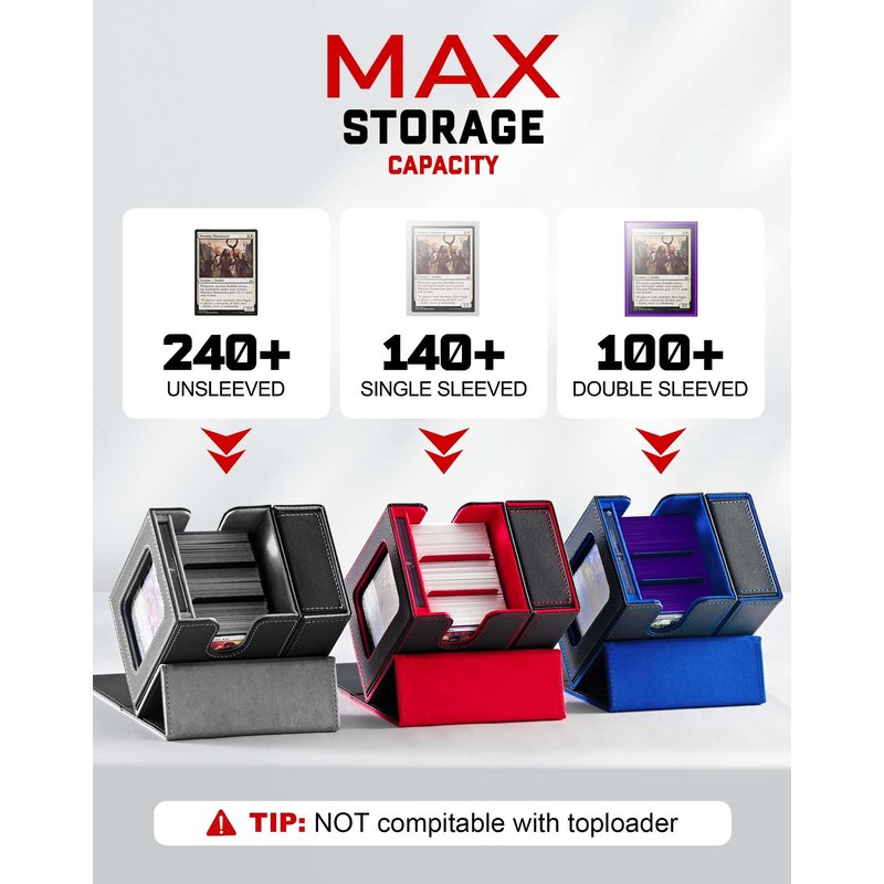 - Ample Capacity: This ZLCA mtg deck box commander provides storage for up to 100 double-sleeved cards or 140 single-sleeved or 240 unsleeved cards, A dice tray is also included that ensures all your gaming essentials are neatly organized and within easy reach