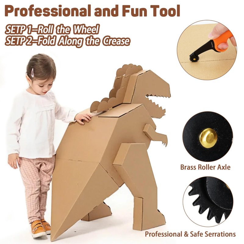 ZLemma Kids Cardboard Construction Tool Kit with Scoring Wheel, Safe Saw Cardboard Cutter & Perforate Lines to Sculpt Cardboard 2 pcs Set, Fold Roller for Boys and Girls