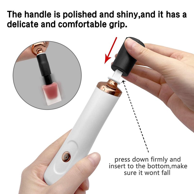 - High-Efficiency & Easy To USE : Just press the button, and wait for 10 seconds to shake the ink evenly. Press it again after ten seconds, you can turn off. And electric Nail Lacquer Shaker only takes 10 seconds to save time. No need to shake the glue manually shake.