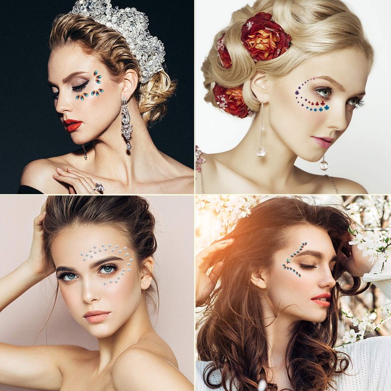 - DIY Your Own Makeup: Can be DIY on anywhere, like your face, forehead, eyebrows, cheeks, around your eyes, stomach, chest, back,arms, hands, waist, legs or even your nail to catch eyes . Just place the gems on your face and body, so easy to use but immediately makes you different and glamorous;