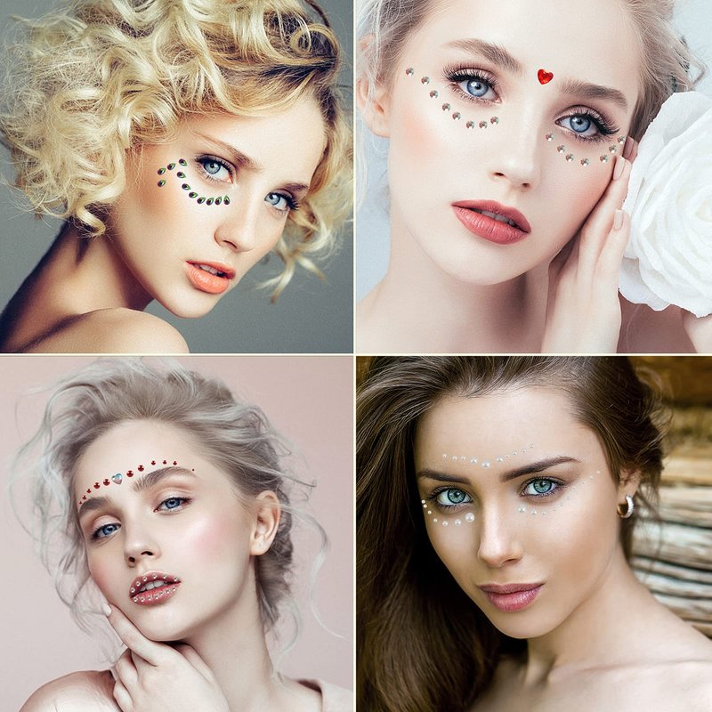 Our product is made of rhinestone and acrylic diamond, safe and durable, the face gems are also re-usable, clean them after your first time use, they can be applied again by using eyelash glue or body glue.