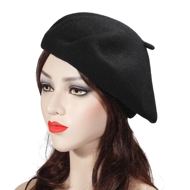 ZLYC Wool French Beret Hat Solid Color Beret Cap for Women Girls (Black)