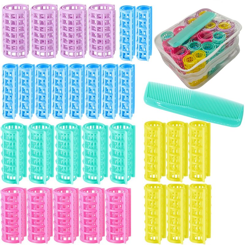 - Package: You will get 30 pieces of plastic hair rollers curlers and 1pc green mini comb,Comes with a transparent zipper bag, hair rollers curlers in 5 different colors and sizes,pink, blue, purple, green, yellow color, size information reference image, which is sufficient to meet your different hairdressing needs.