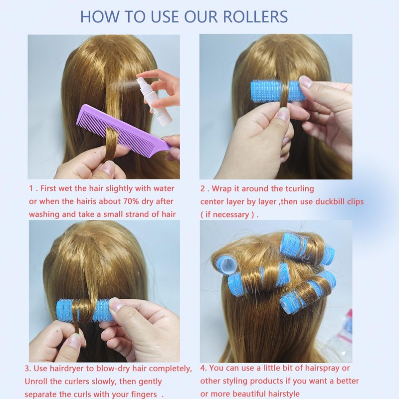 - 【Easy to Use】: Our salon hairdressing are easy to use, wet your hair, then simply stick the rollers onto your hair, no clips or pins needed, the self grip design ensures secure hold. Specific usage method is shown in the figure. NOTE: Please unroll the curlers in the opposite direction of the wrap to avoid tangling your hair.