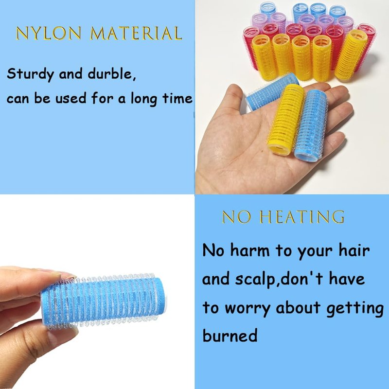 SPECIFICATION Item: 36Pcs Self Grip Hair Rollers Set Material: nylon Color:Blue+Pink+Purple Product Size: Each Roller is 2.4"L*0.6"D Package Weight: 4.0oz PACKAGE INCLUDED: 36Pcs Self Grip Hair Rollers Set with a Pointed Comb These package includes 36pcs hair rollers and a pointed comb. Achieve stunning curls easily and effortlessly with this versatile hair curler set. The self-adhesive design ensures secure hold without the need for any additional pins or clips. Made with high-quality materials, these small curlers are durable and long-lasting. The pointed comb included in the set helps to create precise and defined hairstyles. Perfect for professional salon use or for achieving salon-quality results at home. Transform your look and embrace beautiful curls with this all-in-one curler set. Ideal for all hair types and lengths.
