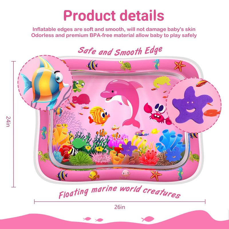 - Fun Tummy Time Toy: Your baby attention would be attracted by the vibrant sea world and cute bright floating animals on the tummy time water mat. The baby toys let baby girls have hours fun play time to improve baby hand-eye coordination.
