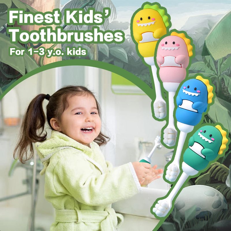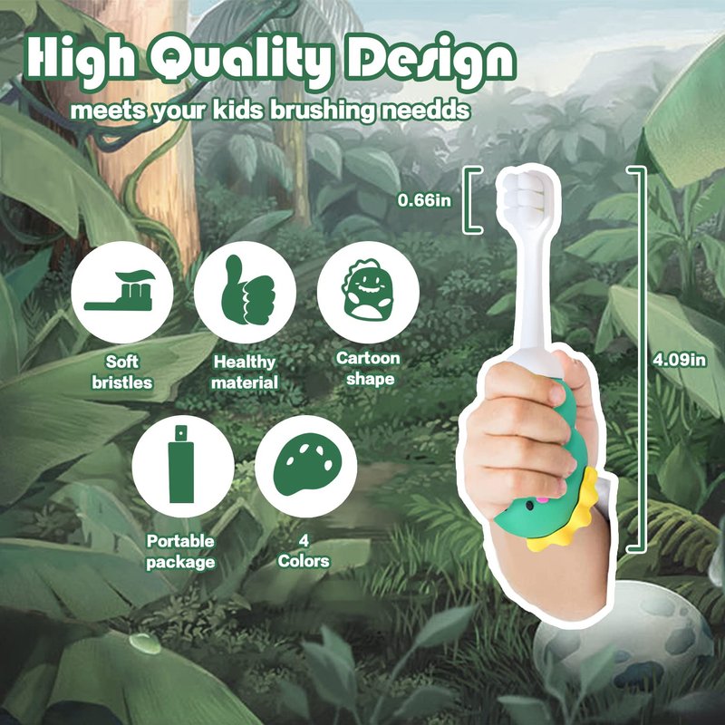 - 【Cute Dinosaurs Non-slip Handle】Our toothbrushes come in 4 colors and feature a fun dinosaurs shape on the handle, making brushing fun and easy for kids. The non-slip handle ensures a comfortable grip, and you can assign different colors to different kids.