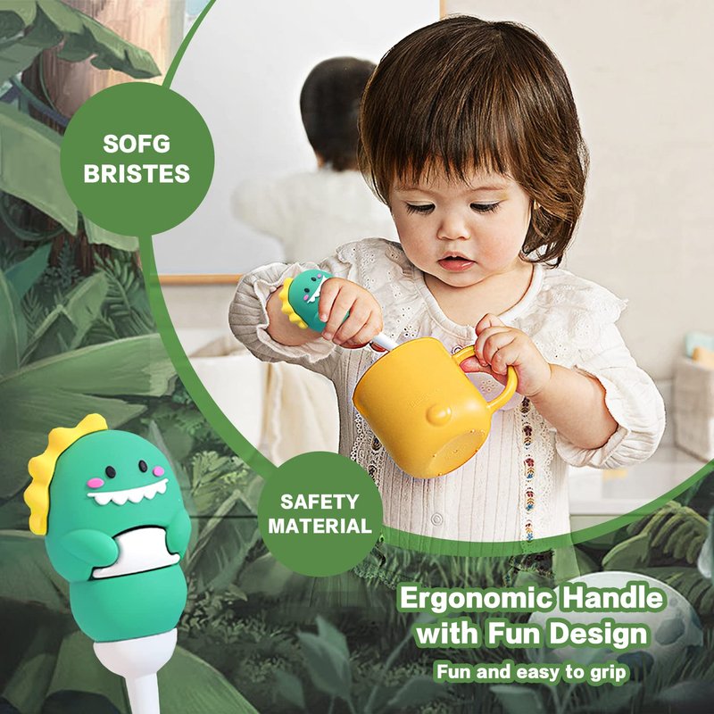 - 【Cute Dinosaurs Non-slip Handle】Our toothbrushes come in 4 colors and feature a fun dinosaurs shape on the handle, making brushing fun and easy for kids. The non-slip handle ensures a comfortable grip, and you can assign different colors to different kids.