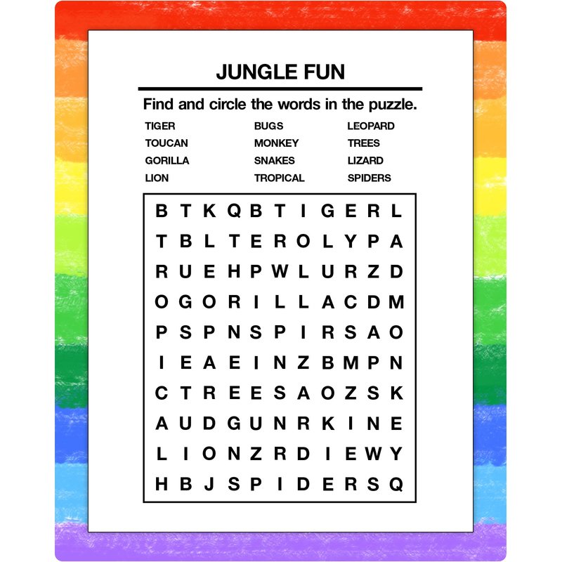 - Word searches are a childhood staple and great for adults, too. They are extremely fun and they stimulate the brain! The word search activity pad features a full color cover and 16 pages of word search games for kids.