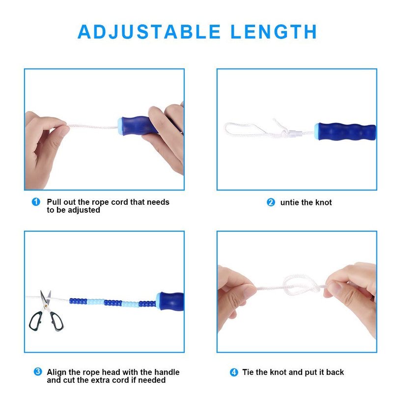 - [ADJUSTABLE LENGTH] - There is a knot inside the handle,you can shorten or lengthen it by reducing or increasing the bead and knot.This 9 ft jumping rope can be quickly and easily adjusted to your desired length within minutes!