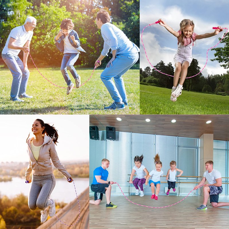 - [NO TANGLED&DURABLE] - The kids jump rope is made of durable nylon covered with the soft and lightweight TPU beads.The combination of the two materials makes the skipping rope not twist and wear resistant.Unlike other ropes,this soft beads design provides safety for kids and other users.