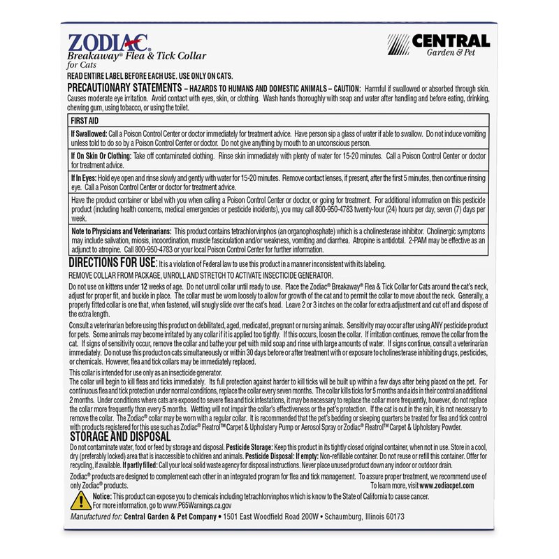 Zodiac Breakaway Flea and Tick Collar for Cats, 13"
