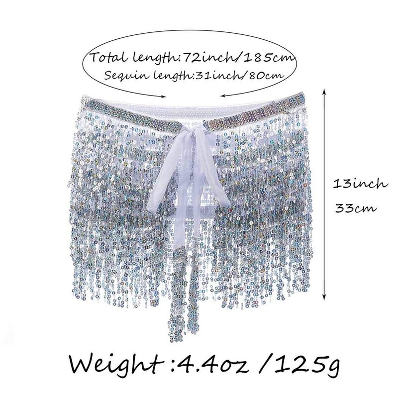 - Material: Sequins.The sequins are holographic, Sequin Tassel hip scarfs for belly dancing is very beautiful in the light.