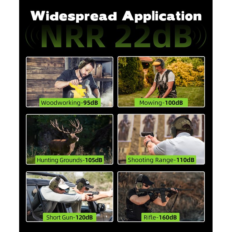 - Safe Mltui-purpose Application: Backed by ANSI S3.19-1974 (American National Standards Institute) and CE EN 352-1 (European standard) certifications, I strongly recommend that you equip yourself with these shooting earmuffs, which are suitable for any noisy environment, such as shooting, hunting, mowing, aviation, construction, and processing