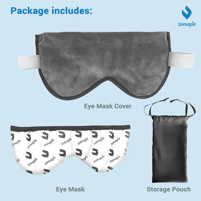 Zomaple Moist Heat Eye Compress Mask The Zomaple hydrating eye mask is easy-to-use and offers quick, long-lasting, and natural relieve for dryness. Simply microwave the eye mask for 15-20 seconds and enjoy sustainable warmth for 20-25 minutes. You can use the mask on a need-to basis or as frequently as you like. The mask uses self-hydrating silica beads, that absorb moisture in the air and releases it to provide natural lubrication to and around the area of the eye. Thus the eye heating pad lasts long and provides optimal and consistent heat. The mask has been stitched with utmost care to ensure that the beads placed inside stay in their place. This allows you to use the mask sitting up or laying down in any position. This Heat Eye Mask is perfect for curing eye conditions such as dry eyes, irritation, itchiness, excess watering, redness, swelling, and burning sensations in the eye. This is also a sinus mask, stye eye compress, and heat compress eye mask for puffy eyes, headache, blepharitis, pink eye, Meibomian gland dysfunction (MGD), and eye strain. Why Choose Zomaple? ✅ Washable, reusable, adjustable, and microwavable ✅ No harsh substance or latex ✅ 100% Natural and organic ✅ Comes with a silk pouch