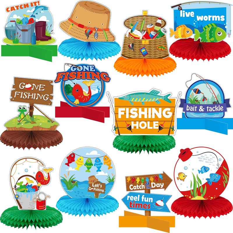 Zonon 12 Pieces Gone Fishing Party Supplies Fishing Centerpieces Fisherman Friendsmas Honeycomb Party Decorations Summer 3D Fishing Table Decor for Birthday Party Decorations