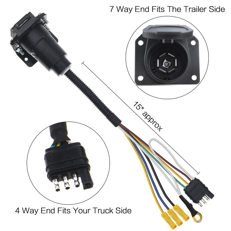 - The 4-way flat socket to the 7-way blade pin round type socket,commonly Used with T-Connectors or Tail Lamp Converters with 4-Way Flat Car End Connections