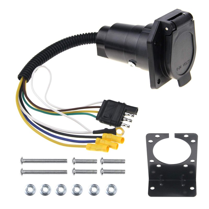 ZOOKOTO 4 Flat to 7 Way Blade Trailer Adapter Electrical Connector with Connector Socket Mounting Bracket