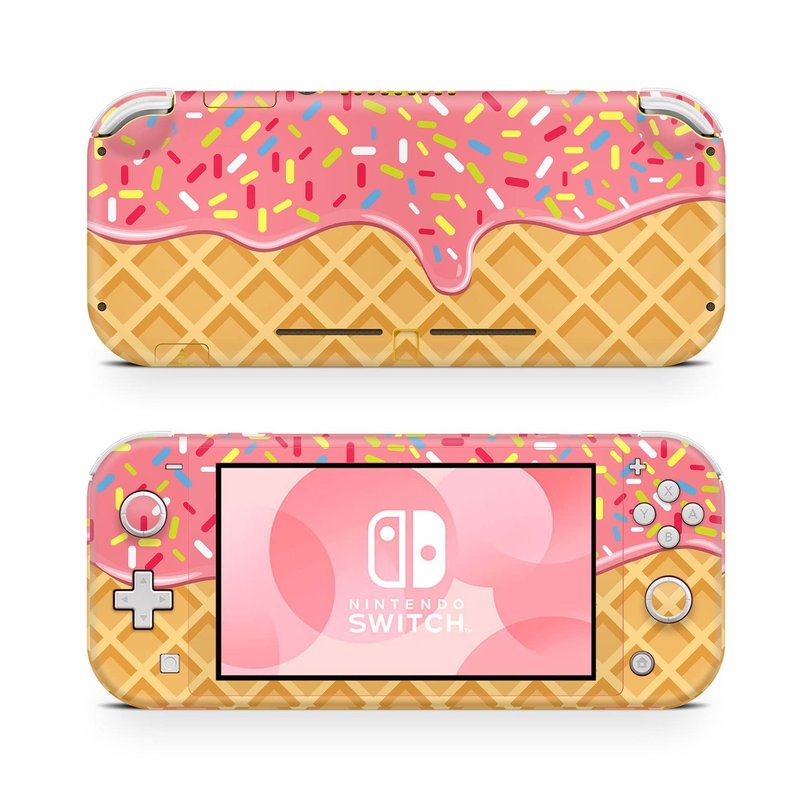 ZOOMHITSKINS Switch Lite Accessories, Compatible for Switch Lite Skin, Waffle Cookie Sweet Food Cute Donut Pink Yellow, 3M Vinyl, Durable & Fit, Easy to Install, Made in The USA