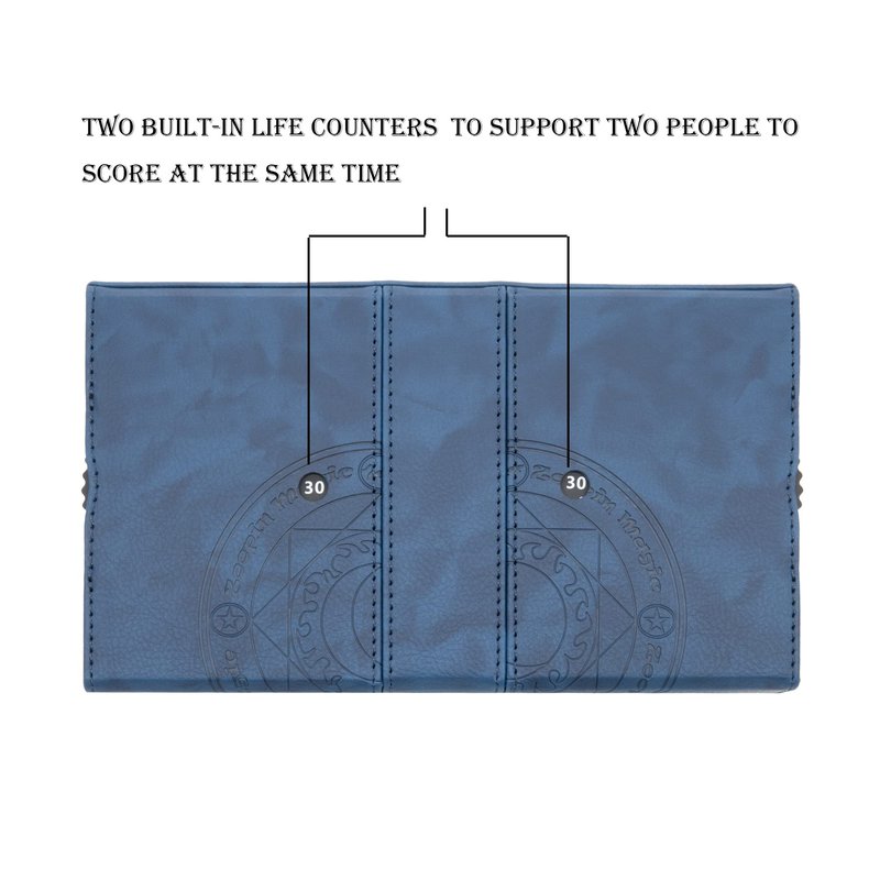 Standard Size Deck , hold up 200+ double Sleeved Card or 240+ Naked Card Like Magic the Gathering , Pokeman and others . With Strong Magnet ,Soft Interior , with 2 life counters to supports two people to play and score at the same time
