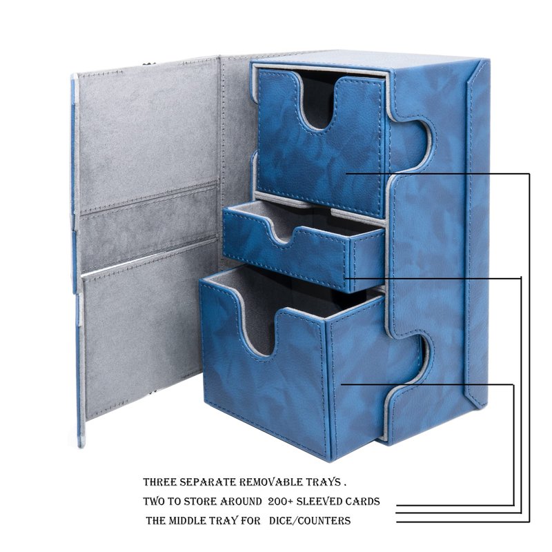 Zoopin 200 Card Deck Box for MTG ,CCG,TCG,Yugioh...With Two Built-in Life Counters and Two Card-trays plus one Dice/Token Tray (Blue ) …