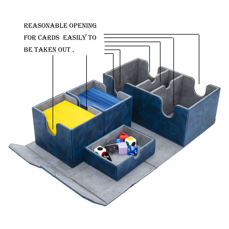 - Two Removable Card Trays and one Dice/Token Tray give you separately independent access to the cards and the dices